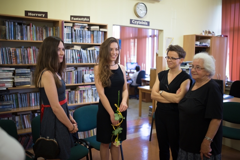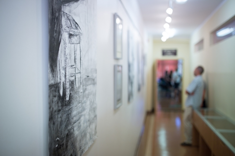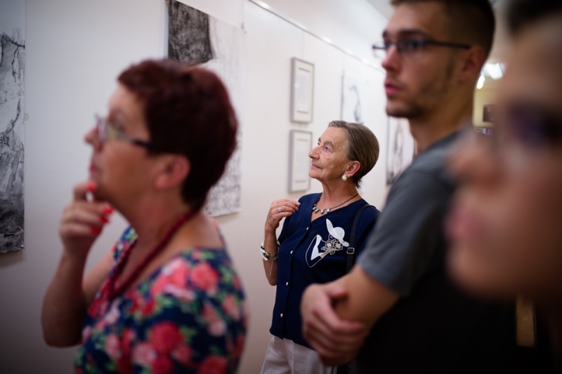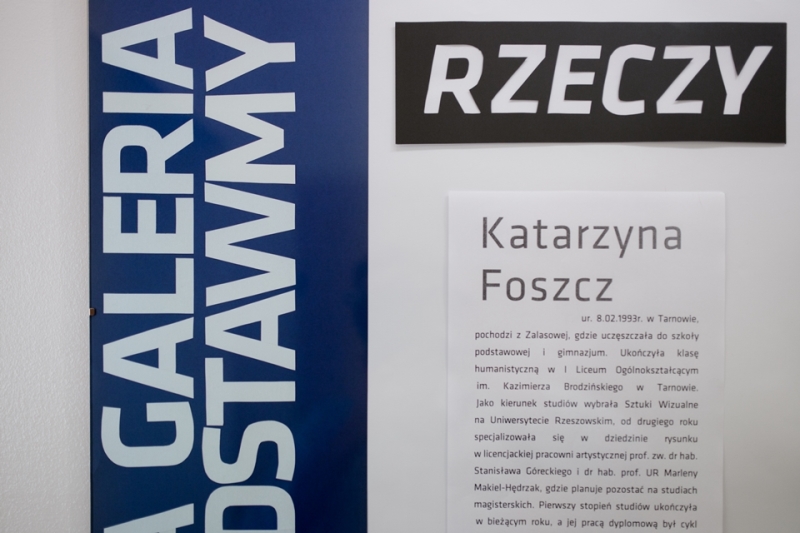 _MG_0126Kolejna młoda osoba debiutuje wystawą w naszej Małej Galerii „Przedstawmy się”.Katarzyna Foszcz – tegoroczna absolwentka studiów licencjackich na Uniwersytecie Rzeszowskim, na kierunku sztuki wizualne, prezentuje swoją pracę dyplomową – cykl grafik „Rzeczy”. W ciepłe piątkowe popołudnie – 18 września odbył się wernisaż otwierający wystawę. Cieszy nas to, że kolejny raz gościliśmy, może niezbyt liczną, ale wierną grupę osób, otwartych na sztukę i chcących w niej uczestniczyć. Swobodna atmosfera spotkania sprzyjała rozmowom o sztuce oraz spokojnej kontemplacji wystawionych prac. Oszczędność środków artystycznych – głównie czarny węgiel, odrobina czarnego tuszu, biały suchy pastel, gdzieniegdzie niebieska plama – tworzy pełną niedomówień, otwartą przestrzeń do rozmowy z odbiorcą. Pomimo użytej palety barw prace są jasne, charakteryzuje je też rozmach kreślarski. „Modelami” tych martwych natur nie są precyzyjnie, czy też „precyzyjnie niedbale” ustawione na podestach przedmioty, ale pomocnicy: porzucone sztalugi, uszkodzone krzesła, wypatrzone w kącie pracowni akcesoria. Nieoczywiste kształty tworzą aurę tajemniczości wokół „wyjętych z cienia” bohaterów trzeciego planu. Wystawa ta znacznie różni się od poprzedniej, wystawianej w naszej galerii, ale dzięki temu można zobaczyć jak różnorodna i wielowątkowa jest sztuka. Warto zobaczyć! Zapraszamy do zwiedzania!