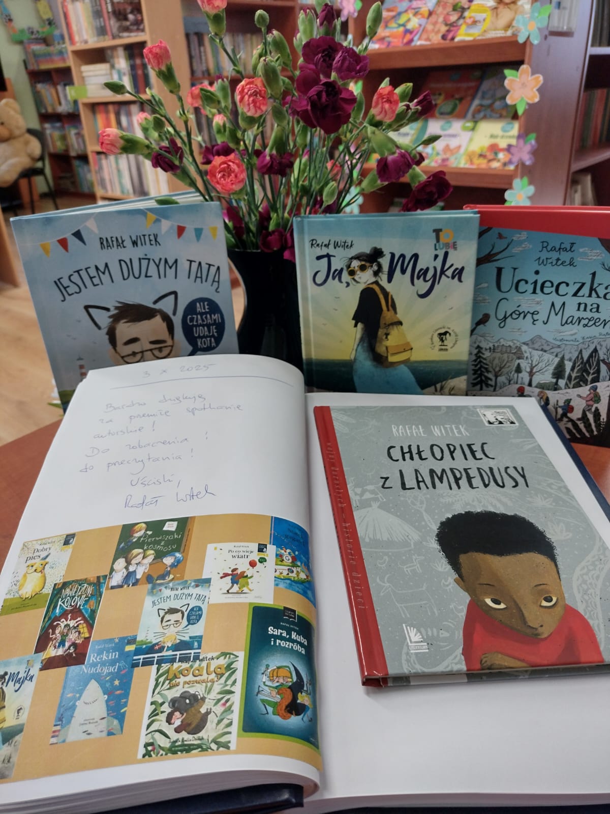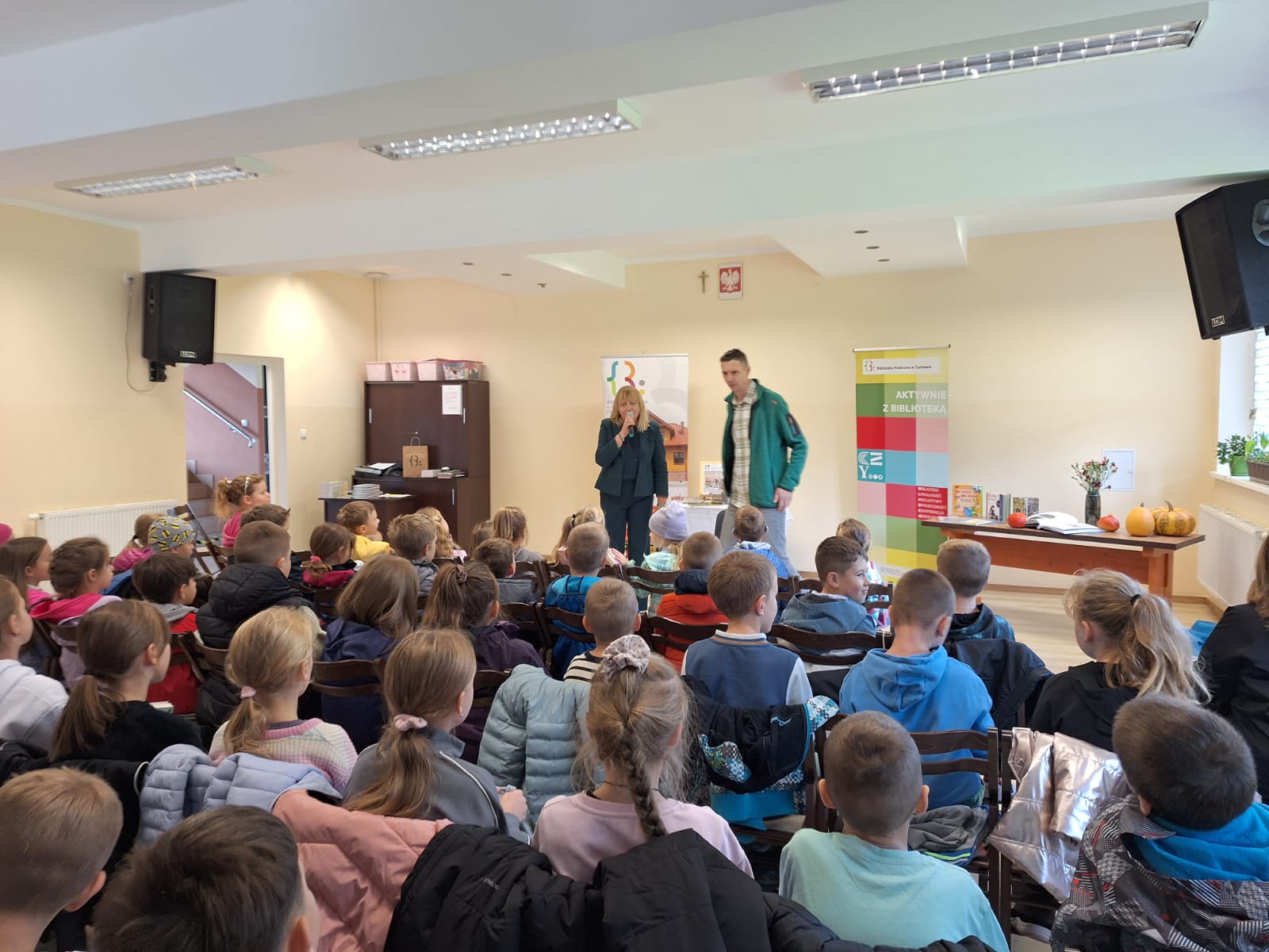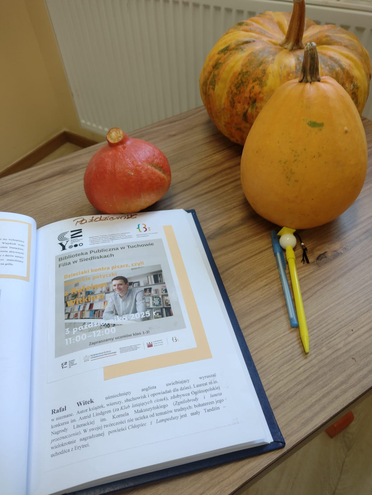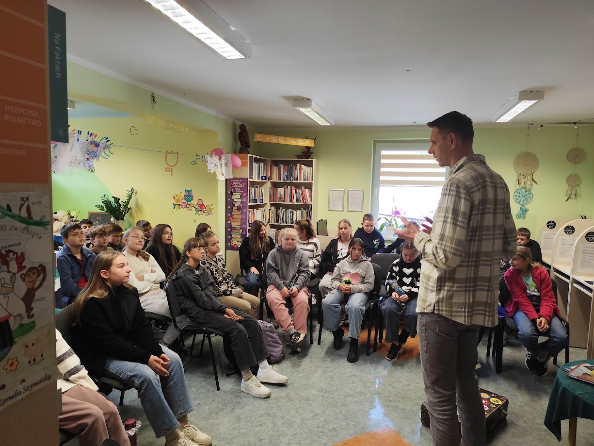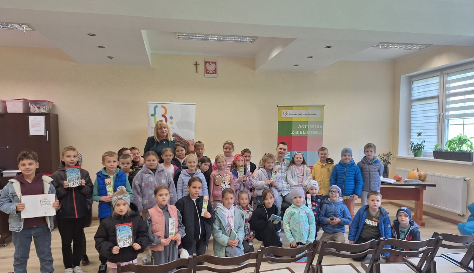 3 października w Bibliotece Publicznej w Jodłówce Tuchowskiej odbyło się wyjątkowe spotkanie z Rafałem Witkiem – pisarzem, poetą i autorem licznych książek dla dzieci i młodzieży, laureatem wielu prestiżowych nagród literackich. W wydarzeniu uczestniczyły dzieci z klas IV–VI wraz z opiekunami. Rafał Witek od lat zabiera młodych czytelników w fascynujące podróże pełne przygód, humoru i niespodzianek – i tak było również tym razem! Pisarz przygotował dla uczestników spotkania mnóstwo atrakcji: ciekawe zagadki, quizy oraz zadania specjalne. Były zabawy z rymami i czytanie wiersza „na czas”, co wywołało wiele śmiechu i radości. Nie zabrakło również czasu na pytania – bo przecież ciekawość i chęć odkrywania to coś, co łączy dzieci i pisarzy. Uczestnicy mogli także zakupić książkę autora, zdobyć wyjątkową dedykację i zrobić pamiątkowe zdjęcie. Serdecznie dziękujemy Rafałowi Witkowi za tę literacką przygodę a wszystkim uczestnikom za obecność i wspólnie spędzony czas. Spotkanie zostało dofinansowane ze środków z Instytutu Książki pochodzących z dotacji celowej Ministra Kultury i Dziedzictwa Narodowego w ramach projektu Małopolskie Dyskusyjne Kluby Książki-2025.