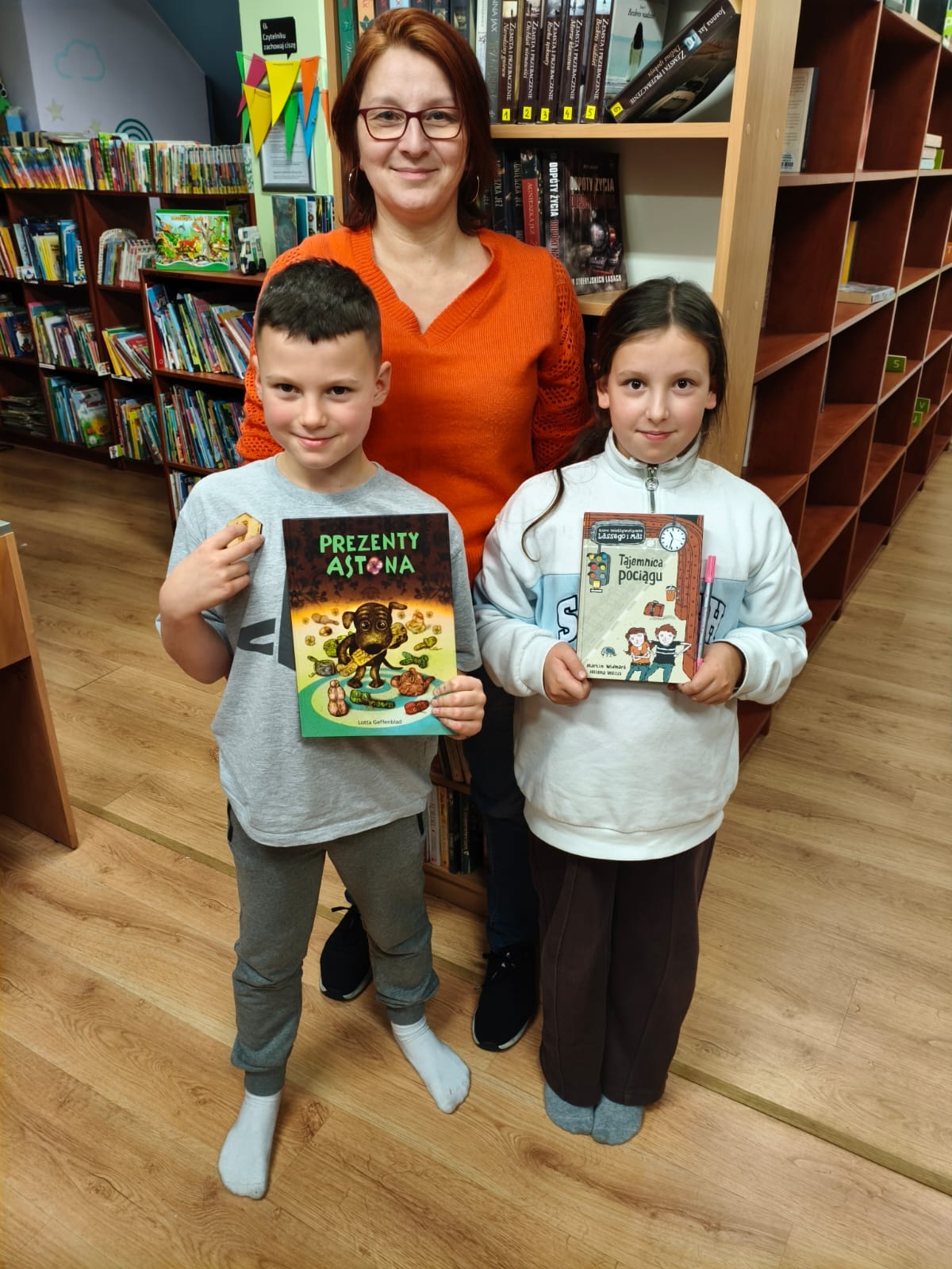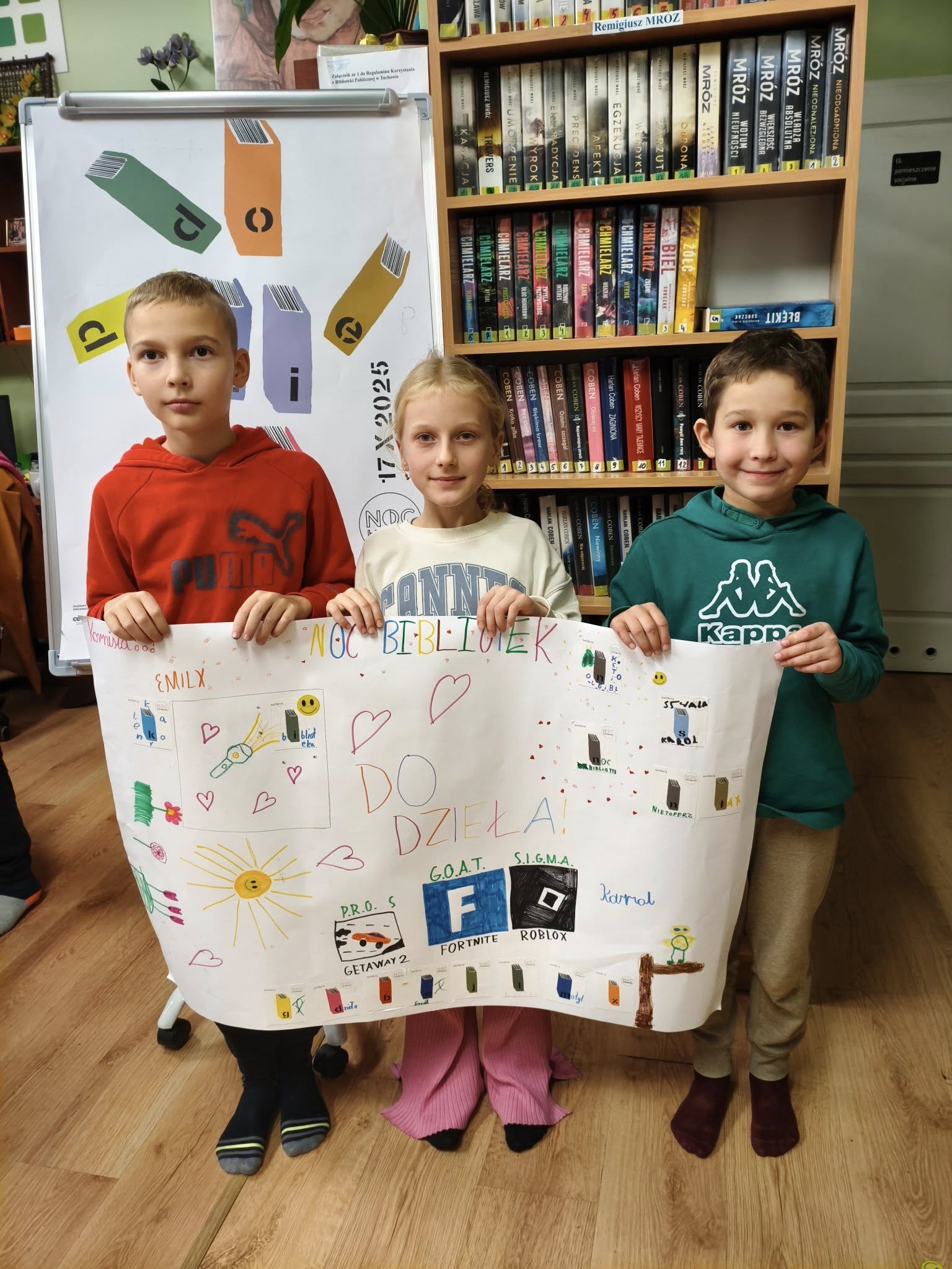 Biblioteka to nie tylko miejsce, gdzie w ciszy i spokoju można zatopić się w ulubionej książce, ale także przestrzeń pełna energii, tajemnic i niezapomnianej zabawy! W tym roku w dniu 17 października w ramach XI Ogólnopolskiej Nocy Bibliotek zachęceni hasłem „Do dzieła” uczestnicy spotkania ruszyli w świat odkrywania detektywistycznych umiejętności. Nocna przygoda rozpoczęła się od fragmentu książki „Tajemnicy pociągu”, podczas którego dzieci tropiły ukryte skarby między bibliotecznymi regałami. Później przyszła pora na zagadki i quizy o różnym poziomie trudności – adrenalina sięgała zenitu! Po intensywnej zabawie nadszedł czas na relaks i wspólny poczęstunek, a gościem specjalnym był edukator Wojciech Sanek z Zespołu Parków Krajobrazowych Województwa Małopolskiego, który w znakomity sposób przeprowadził kalambury – śmiechu było co nie miara! Po emocjonujących rozgrywkach cała załoga wyruszyła na nocny spacer z lampionami, podczas którego poznała nocne życie zwierząt. Ciemność, odgłosy nocnych stworzeń sprawiły, że uczestnicy Nocy Bibliotek poczuli się jak prawdziwi odkrywcy. Po powrocie do biblioteki dzieci zabrały się do tworzenia przepięknych plakatów poświęconych Nocy Bibliotek. Serdeczne podziękowania dla pani Moniki Drobot za wspaniałą sesję fotograficzną i nieocenioną pomoc podczas wydarzenia. To była noc pełna uśmiechów, nauki i niezapomnianych chwil!Do zobaczenia na kolejnych bibliotecznych przygodach!