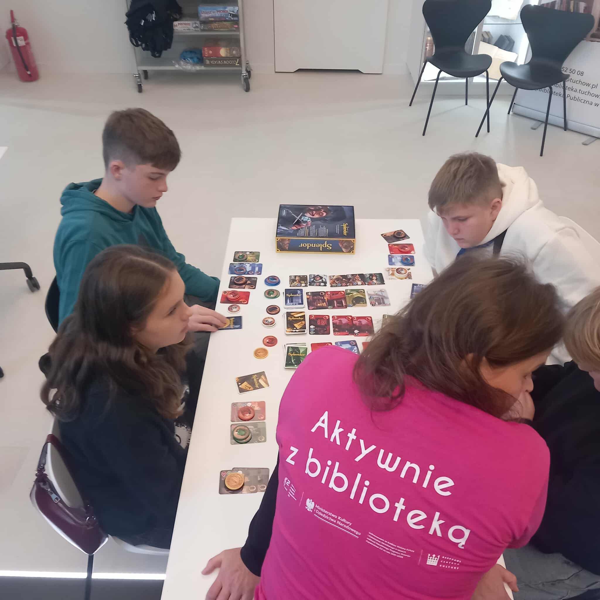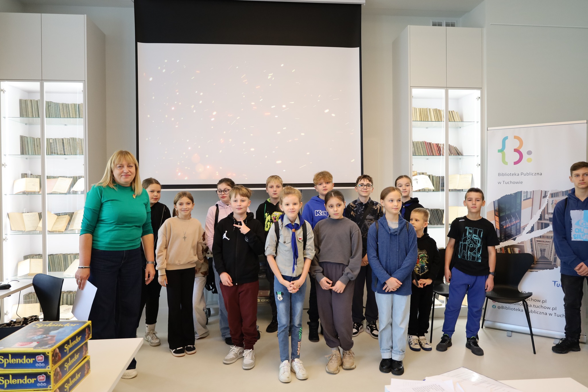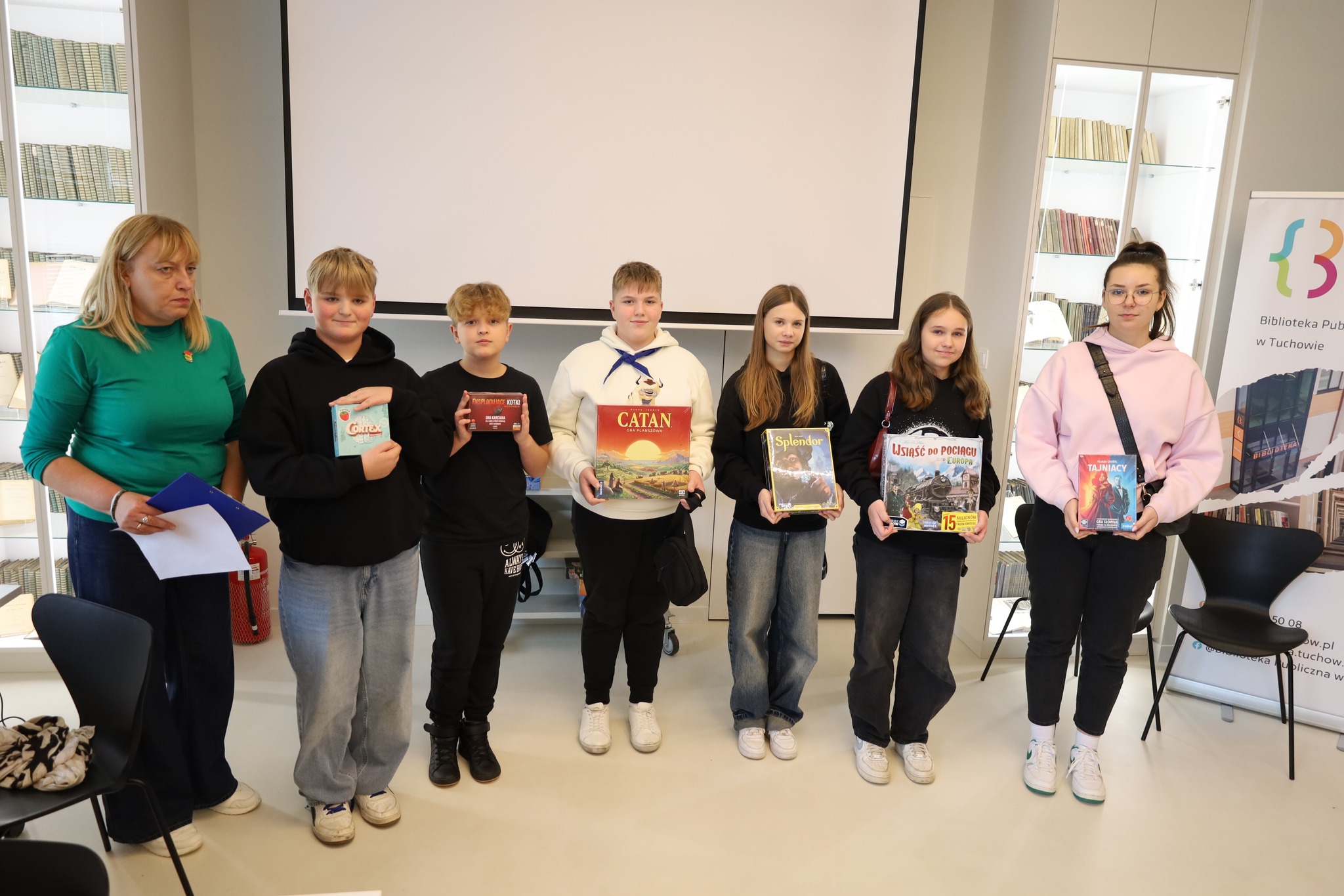 Biblioteka Publiczna w Tuchowie oraz Młodzieżowa Rada Gminy zaprosiły wszystkich miłośników gier planszowych do udziału w I Międzypokoleniowym Turnieju Gier Planszowych, w sobotę 18 października 2025 roku w siedzibie biblioteki przy ul. Chopina 10. Już w piątek przed południem zgłosiło się 37 osób, co zmusiło nas do zamknięcia listy zgłoszeń. To była niepowtarzalna okazja, by w duchu zdrowej rywalizacji i wspólnej zabawy spotkać się, miło spędzić czas, poznać nowe, ciekawe gry planszowe. Niektórzy mogli także wygrać cenne nagrody. Były wielkie obawy, bo pierwszy raz organizowaliśmy takie wydarzenie, ale jak to mówią „pierwsze koty za płoty”. rozgrywki odbywały się równolegle w trzech pokojach o rożnym stopniu trudności gier. Ze względu na ilość uczestników w każdej grupie losowo rozdzieleni zostali oni na kilka stolików, a wszyscy równocześnie najpierw poznawali zasady i rozgrywali rundę próbną, a później rozpoczynała się właściwa rozgrywka. Grupa I grała w UNO, „PĘDZĄCE ŻÓŁWIE”, „BUŁA, PIZZA, KOT, SER, KOZA”, gr. II – „SPLENDOR”, „CATAN”, „ABALONE” a gr. III – „7 CUDÓW ŚWIATA”, „WSIĄŚĆ DO POCIĄGU. EUROPA”, „SPLENDOR” okazało się, że trudniejsze gry były wcześniej nieznane uczestnikom, dzięki czemu szanse były wyrównane. Niezbędne do równoczesnych rozgrywek egzemplarze ABALONE i SPLENDOR wypożyczyła nam firma Rebel, ufundowała też dwie gry jako nagrody dla zwycięzców – bardzo jej dziękujemy!. Pozostałe nagrody i organizację turnieju zorganizowaliśmy w ramach zadania „Aktywnie z Biblioteką” dofinansowanego ze środków Ministra Kultury i Dziedzictwa Narodowego w ramach realizacji Narodowego Programu Rozwoju Czytelnictwa 2.0 na lata 2021-2025.Kierunek interwencji 4.1. BLISKO – Biblioteka | Lokalność | Inicjatywy | Społeczność | Kooperacja | Oddolność. Zaproponowane gry bardzo się spodobały uczestnikom, dzięki czemu wzrosła ilość miłośników „planszówek” i zainteresowanie ta formą spędzania wolnego czasu! Dziękujemy też Młodzieżowej Radzie Gminy Tuchów za udział i pomoc w organizacji Turnieju.