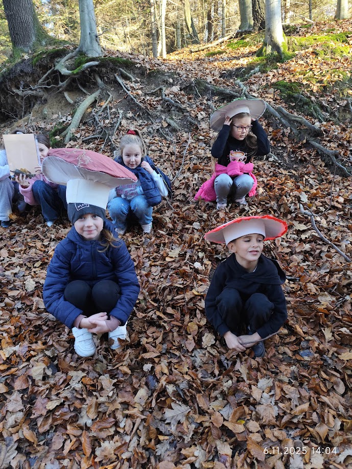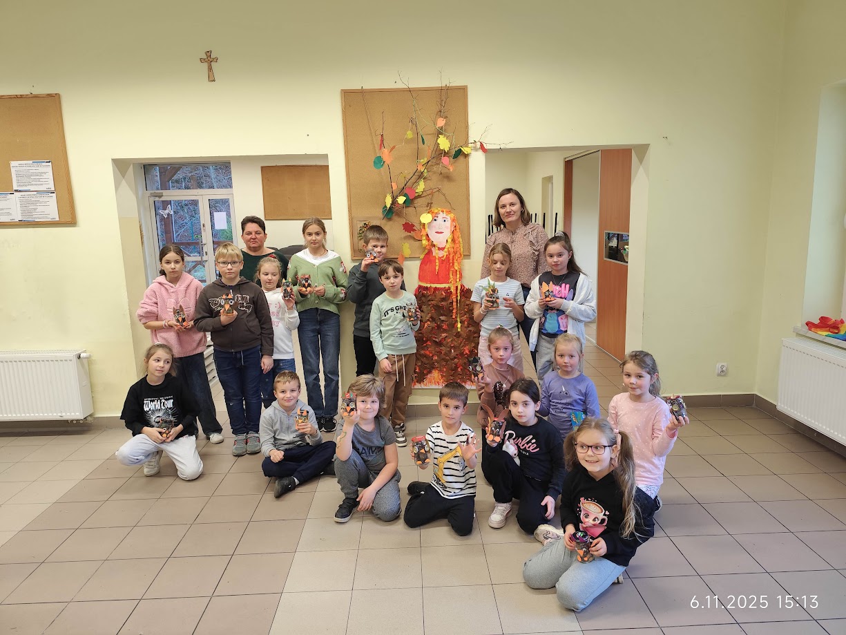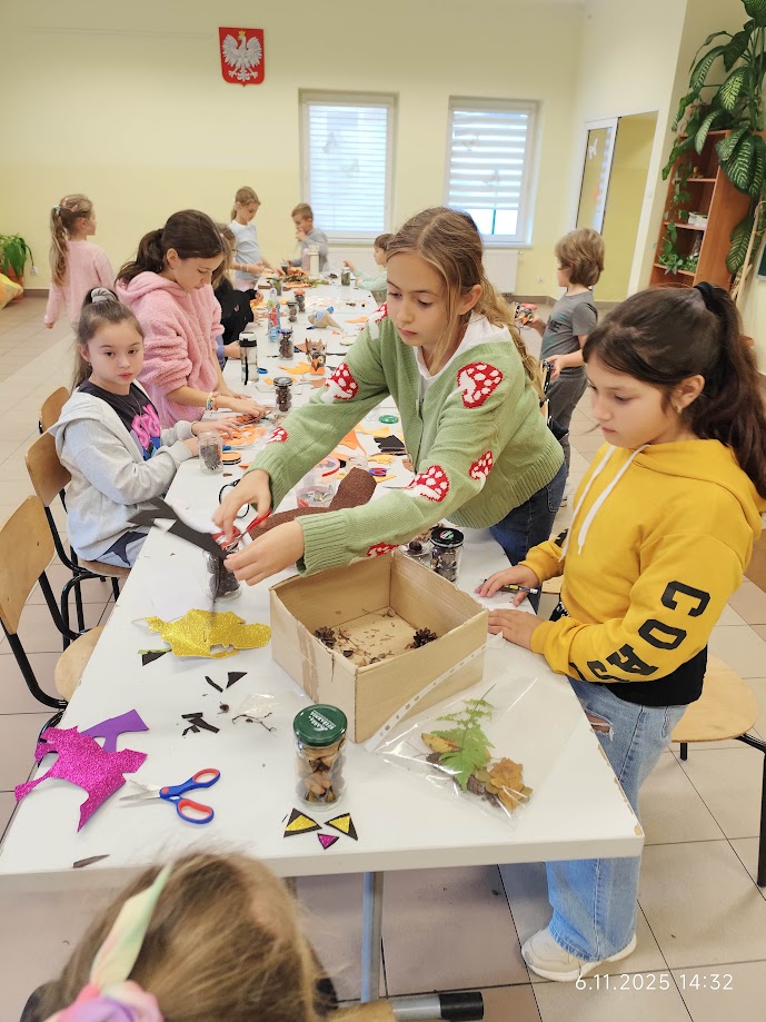 7 listopada Biblioteka Publiczna oraz Dom Kultury w Jodłówce Tuchowskiej zaprosiły dzieci na wyjątkowe zajęcia pod hasłem „Jesienna Misja Odkrywców”. Wykorzystaliśmy piękną, słoneczną pogodę i wyruszyliśmy na spacer do lasu. Młodzi odkrywcy, podzieleni na grupy, mieli do wykonania różne zadania z przygotowanej listy – wszyscy poradzili sobie wzorowo. W leśnym, kolorowym otoczeniu wysłuchaliśmy fragmentów książki „Jesień w świecie przyrody” z serii Młodzi Przyrodnicy. Rozmawialiśmy o tym, dlaczego liście spadają z drzew i co się kryje w ściółce. Podczas zabawy ruchowej dzieci zamieniały się w grzyby, drzewa, wiewiórki, ślimaki i inne zwierzaki. Po powrocie do „Jodełki” przyszedł czas na twórcze działania – powstały kolorowe sowy skrywające jesienne skarby (kasztany, szyszki, żołędzie). Na koniec dzieci stworzyły portret Pani Jesieni. Chętni wypożyczyli książeczki na długie wieczory. Dziękujemy wszystkim uczestnikom za cudowną energię i wspólnie spędzony czas.