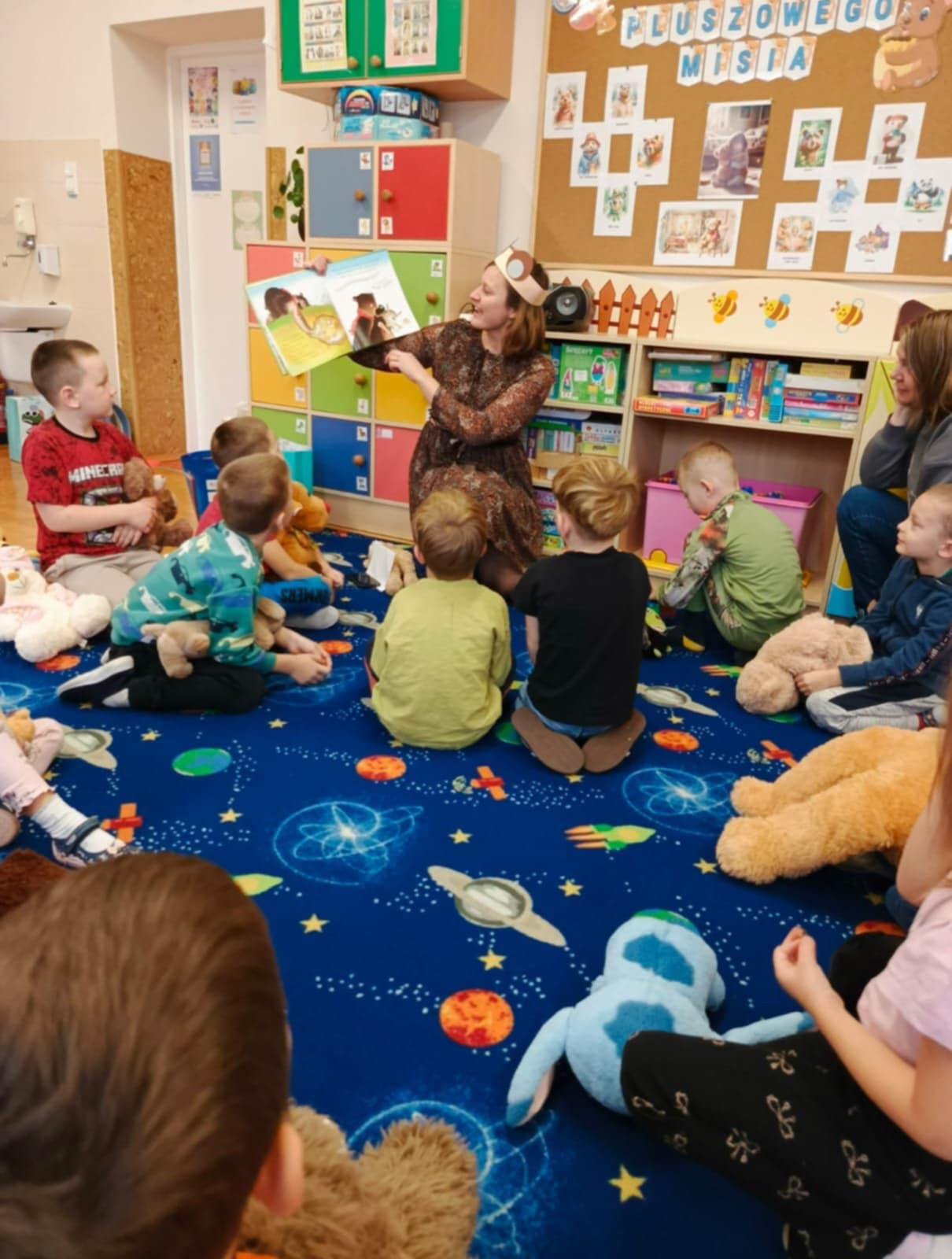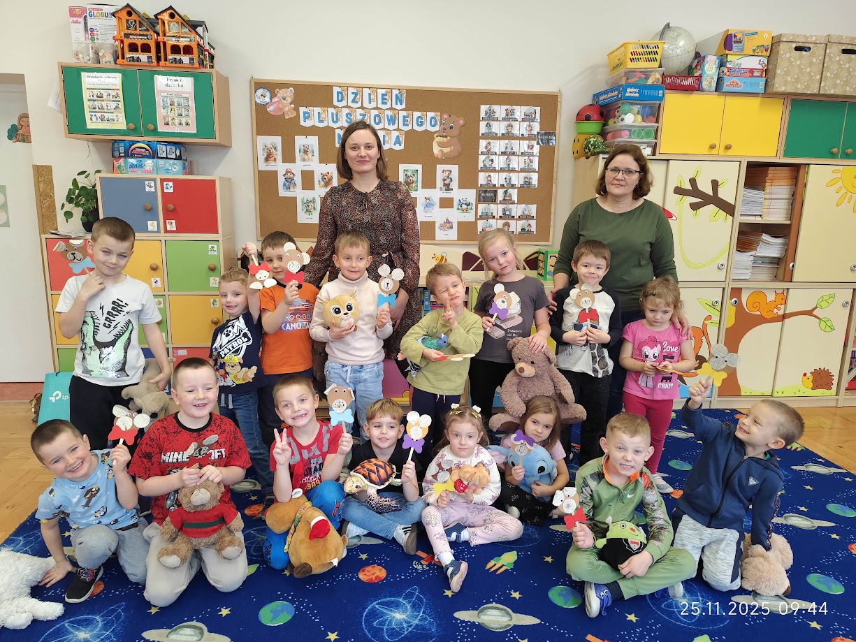 25 listopada swoje święto obchodzi Pluszowy Miś – od lat ulubiony towarzysz dziecięcych zabaw. My wspólnie z dziećmi z Oddziału Przedszkolnego celebrowaliśmy ten dzień w sposób wyjątkowy. Przedszkolaki przybyły ze swoimi ukochanymi pluszakami – małymi i dużymi, burymi i kolorowymi, jedne nowe inne już dobrze „wyprzytulane”. Dzieci z dumą je prezentowały, dzieląc się opowieściami o tym, dlaczego to właśnie ich miś jest najważniejszy. Wysłuchaliśmy też wzruszającej historii o Misiu Tulisiu, który szukał prawdziwego misiowego przytulenia. A potem… zaczęliśmy ćwiczyć! Wspólnie z Misiami wykonywaliśmy gimnastykę buzi i języka, ćwiczyliśmy przytulasy oraz bawiliśmy się przy wesołej muzyce! Było przy tym mnóstwo śmiechu i radości! Nie zabrakło też misiowego przysmaku – słodkiego miodku, którym wszyscy z apetytem się zajadali. Na zakończenie dzieci wzięły udział w warsztatach plastycznych, a w nagrodę otrzymały dyplomy „Przyjaciela Pluszowego Misia”. Dziękuję za zaproszenie i mile spędzony czas!