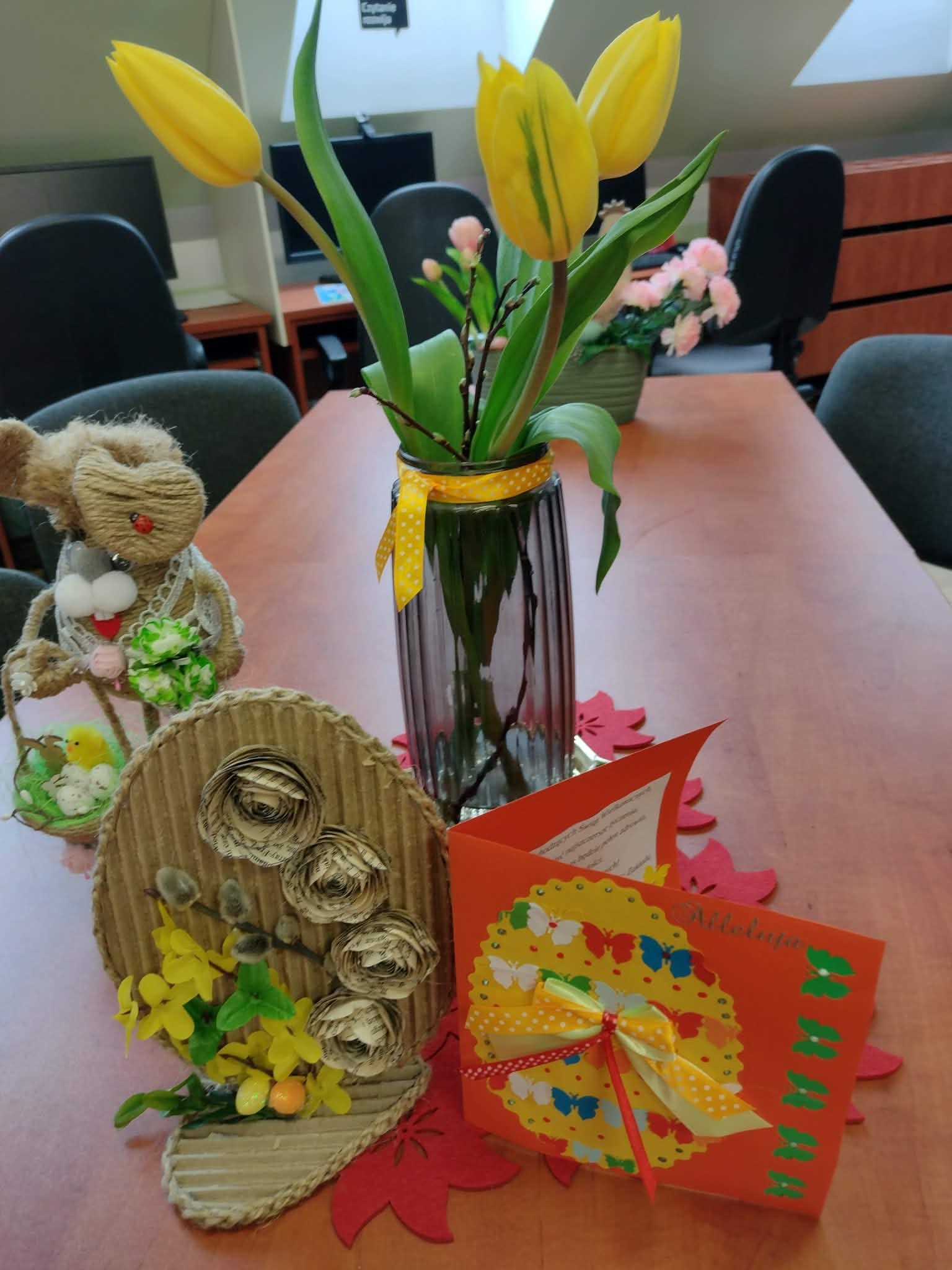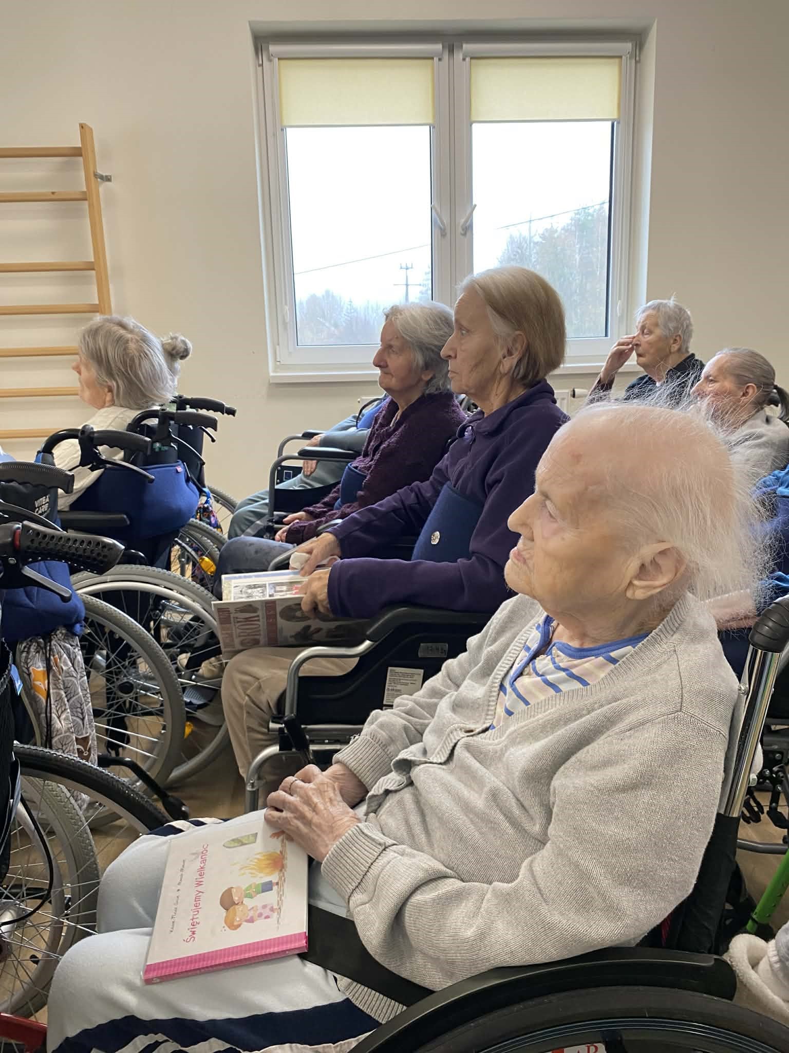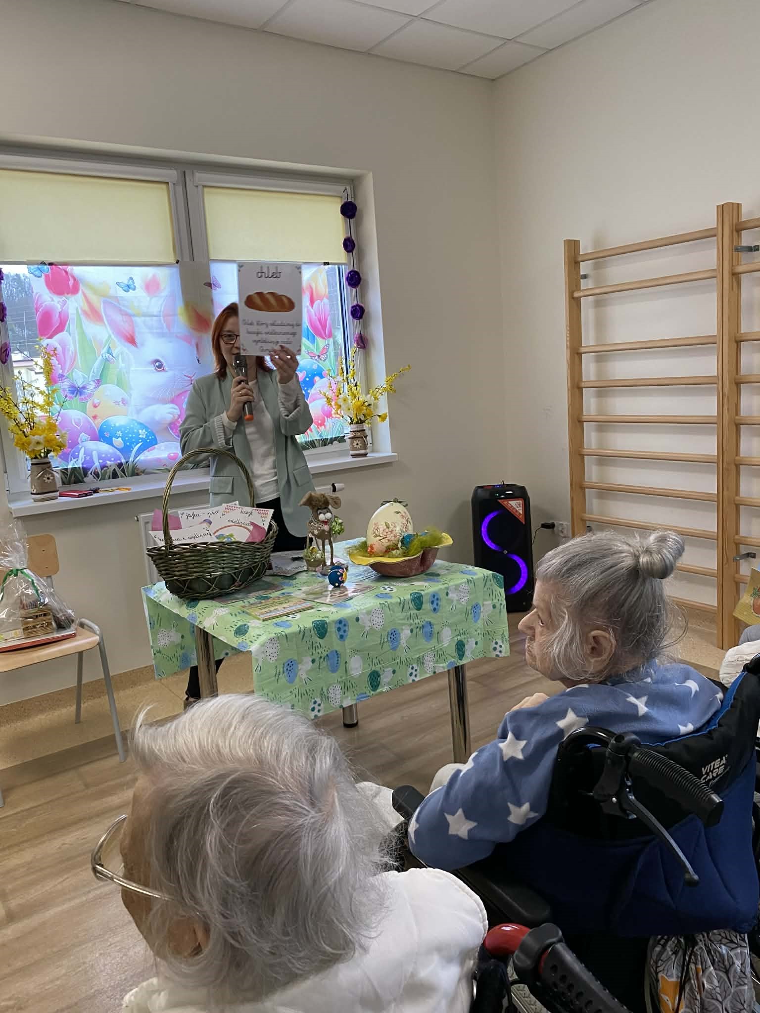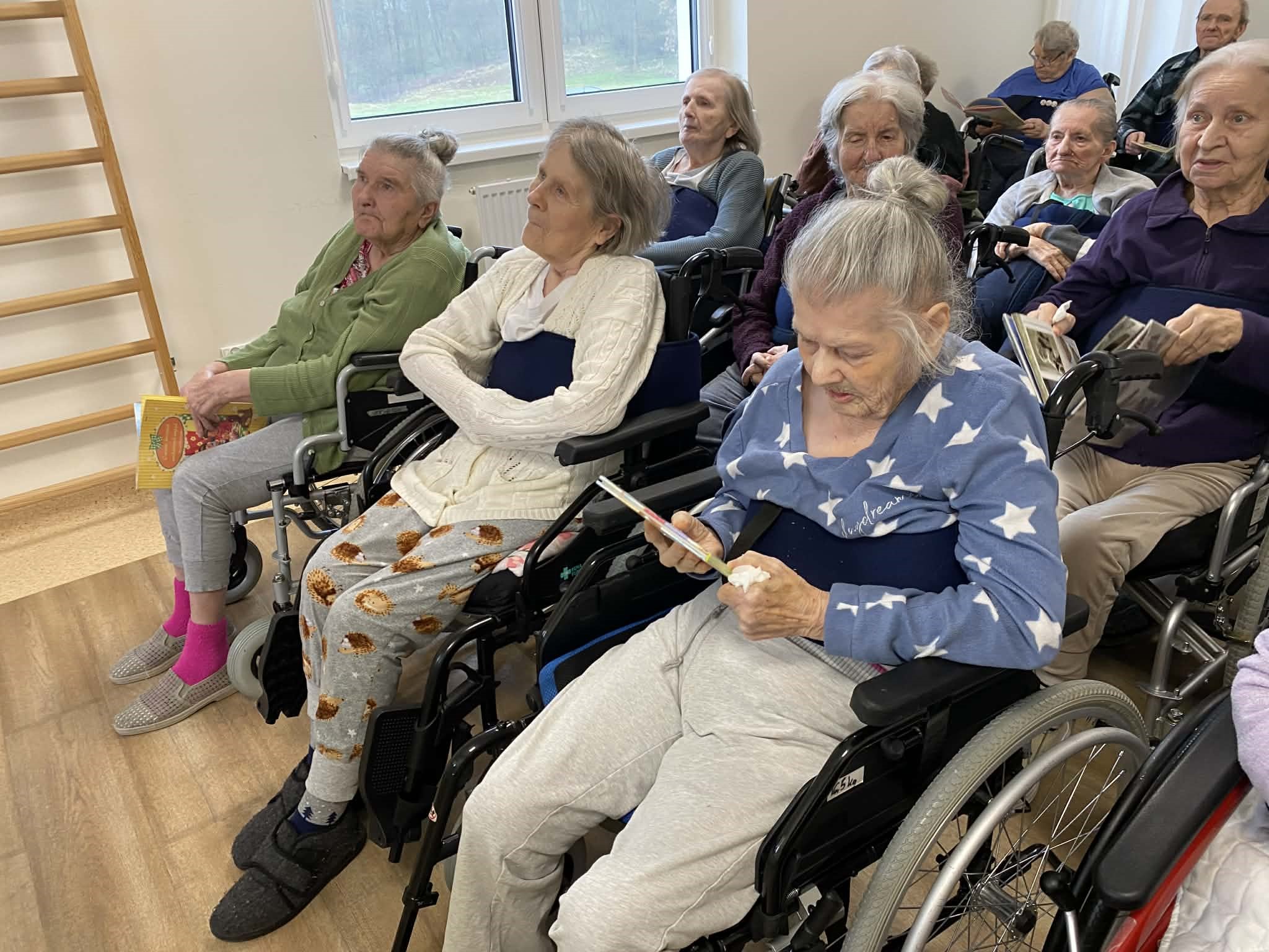 Biblioteka w Filii w Siedliskach przed Świętami Wielkanocnymi w dniu 1 kwietnia zorganizowała wyjątkowe spotkanie z pacjentami Zakładu Opiekuńczo-Leczniczego w Siedliskach. W radosnej i przyjaznej atmosferze wspólnie przypomnieliśmy sobie zwyczaje oraz symbole wielkanocne. Seniorzy z zainteresowaniem oglądali książki o tematyce świątecznej, a wyjątkowym momentem spotkania było wysłuchanie „Legendy o syrence warszawskiej”, zaprezentowanej w niezwykłej formie japońskiego teatrzyku kamishibai. Ta opowieść przeniosła wszystkich w świat wyobraźni. Serdecznie dziękuję za zaproszenie, miłe przyjęcie oraz przepiękny, własnoręcznie wykonany prezent.